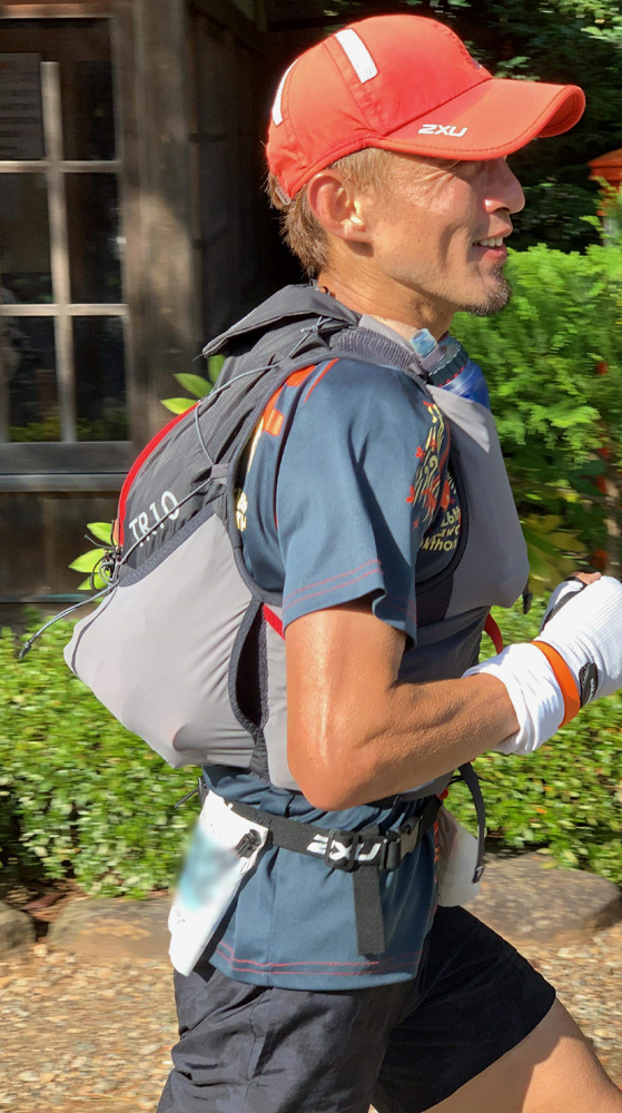 中盤の登りで水分補給をしようとペースを緩めた直後。